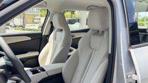 Ghế được bọc da nhân tạo nguồn gốc từ thực vật (vegan leather) thân thiện với môi trường, đục lỗ để tăng độ thông thoáng. Ghế lái chỉnh điện 6 hướng, ghế phụ chỉnh cơ 4 hướng. Thiết kế ghế theo phong cách “ghế gaming” với đệm dày, ôm lưng tạo cảm giác thoải mái.