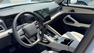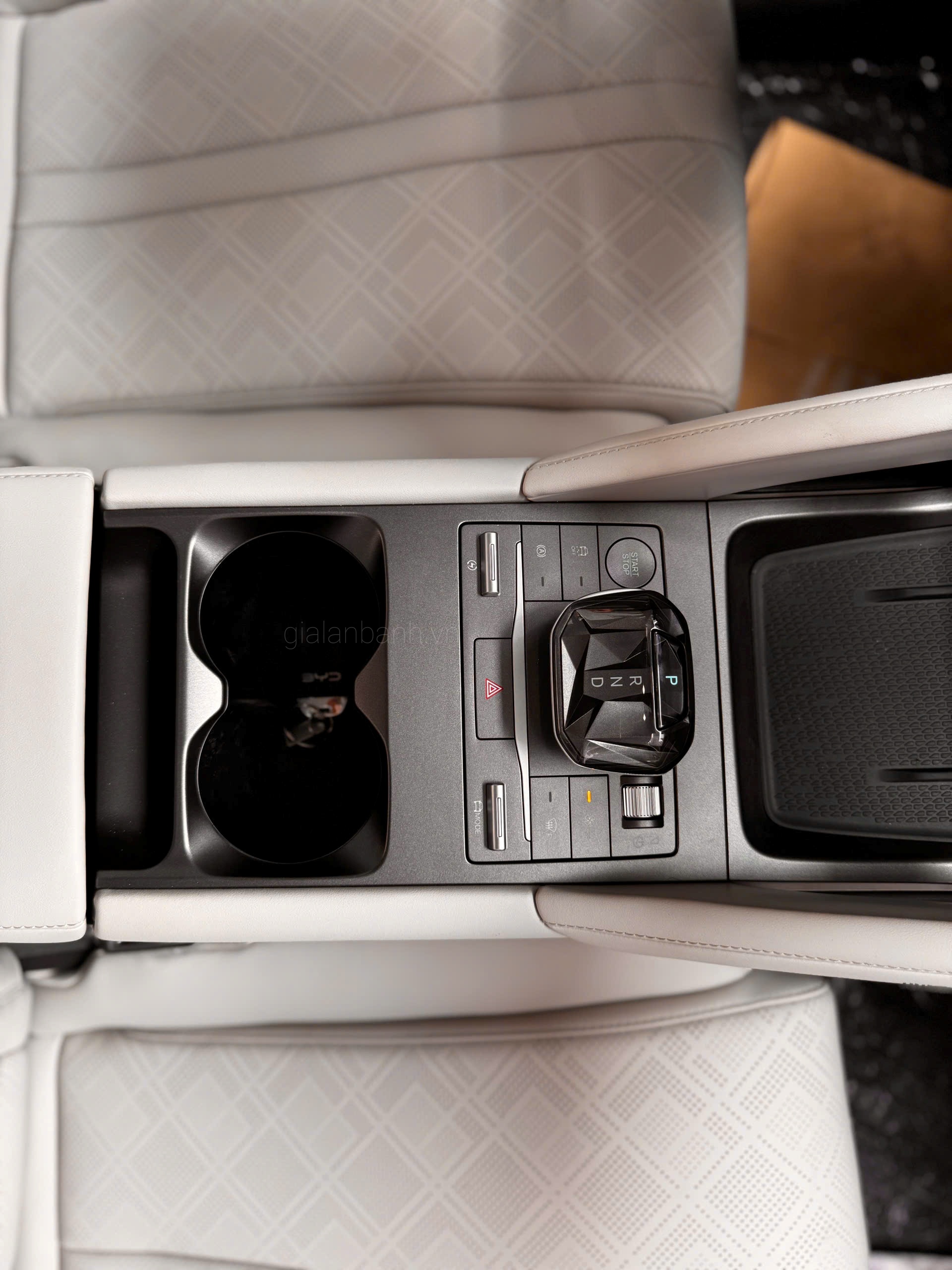 Bệ trung tâm tích hợp 2 khay để ly và bệ tỳ tay, bên dưới là không gian chứa đồ tiện lợi. Cần số tạo hình lấy cảm hứng từ viên kim cương cắt tinh xảo tương tự các dòng xe cao cấp như BYD Seal và Han.
